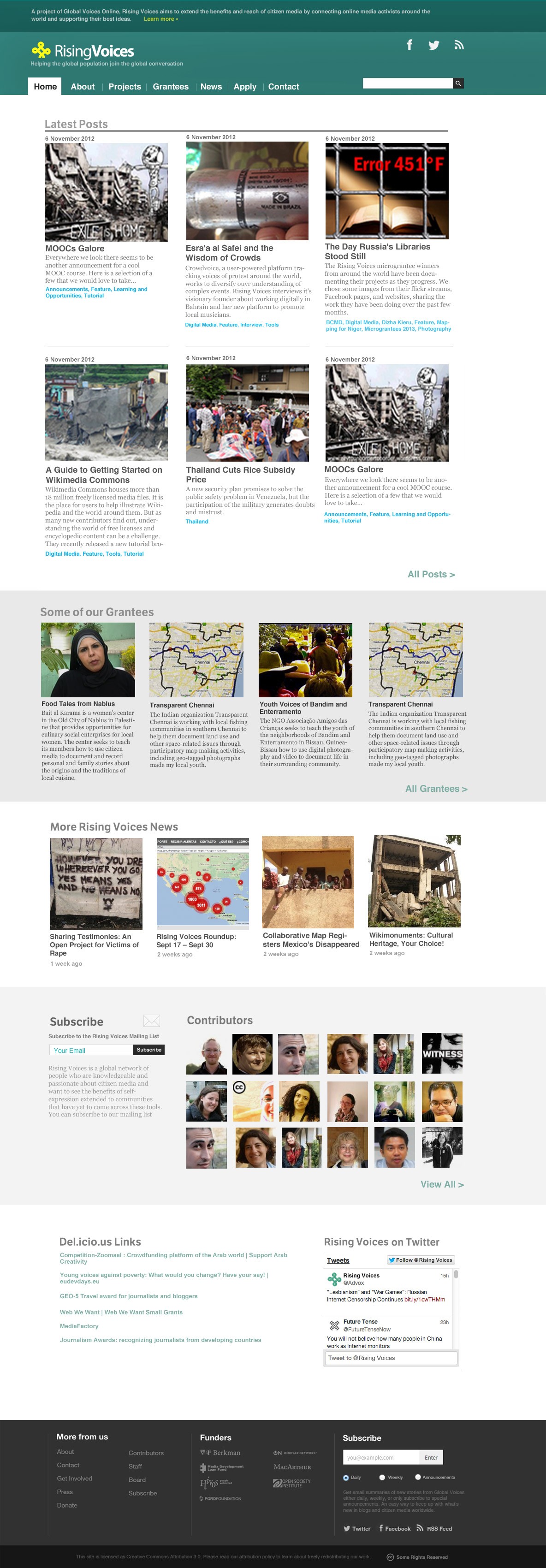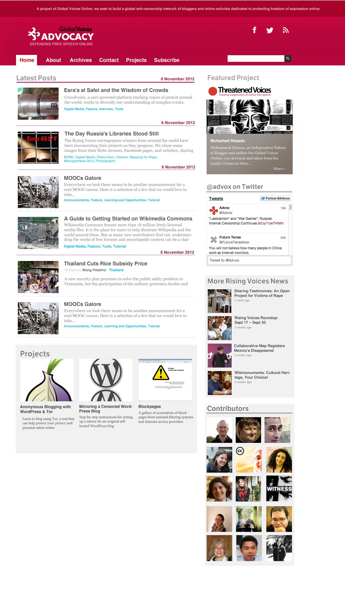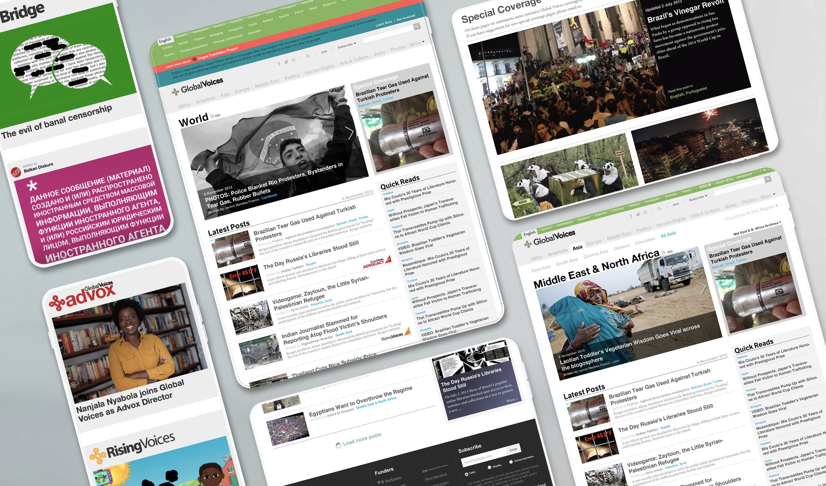 The Global Voices website had indeed reached its moment to make a leap forward. The size of the organization, contributors and content was constantly growing. To raise the perceptions, persona and legitimacy of the organization, an improved user experience, refreshed UI and better usability was needed for getting the site working on newer, smaller devices. Additionally, Global Voices was ready to change course to become more sustainable and competitive in the online news world. For years wearing a blogger’s uniform, GV was ready for a wardrobe change to be taken more seriously as a real news source of citizen journalism.