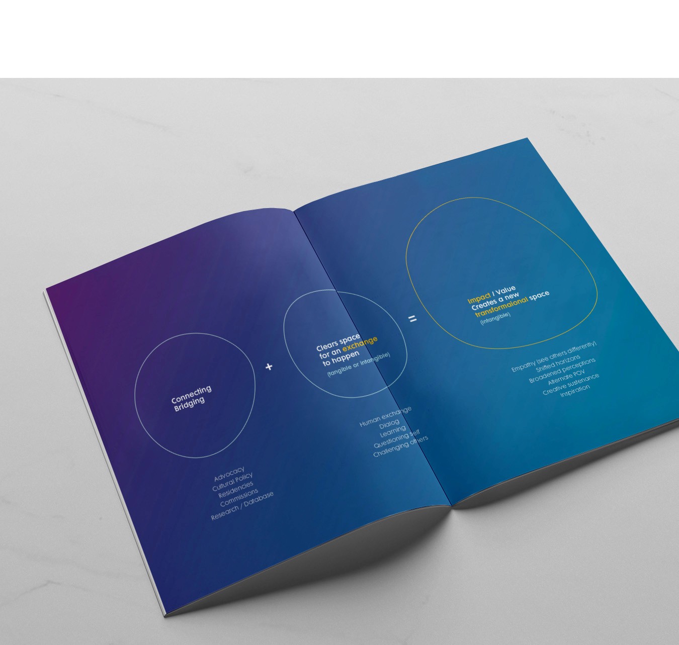 Words matter. And crafting the right strategic mission, vision and values can often be a group effort to make sure everyone is in love with the right articulation. With the ideas in place, all that was left was to work through the right wording with the whole team. Taking into consideration was finding the right balance of art world credibility, nonprofit parameters, and easily translatable in several languages. In the end we not only landed on the right strategic direction and articulation to help TAP apply themselves to a new nonprofit sector, but new clarity to help shape all communications moving forward; newsletters, reports and a new visual identity.